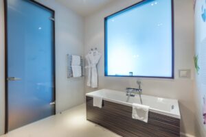- It can enlarge the appearance of your bathroom, which is excellent for smaller areas